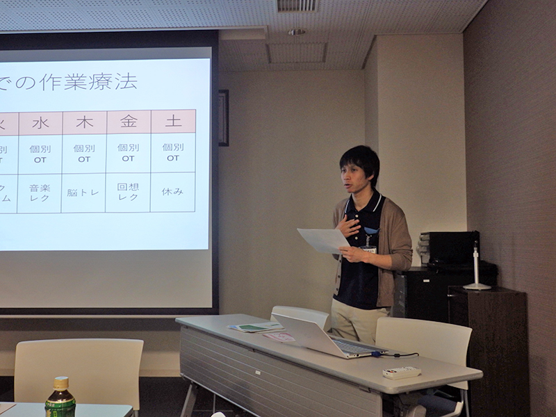 今回の講師は作業療法士内藤弘貴さんに依頼をし、助言者として作業療法科技師長佐藤裕一さんにも参加して頂き作業療法についてお話をいただきました。認知症を持つ家族に対して家族の皆様(出席者13名)が実践しやすい回想法の方法についての話題は特に好評でした。その後の懇話会でも盛り上がり写真の整理についてや、参加していた方の幼少期の思い出が語られるなど出席した櫻井・福田ともに勉強になることや元気づけられることがいっぱいの内容でした。約3か月に一回の不定期開催ですが興味のある方の参加是非お待ちしております。