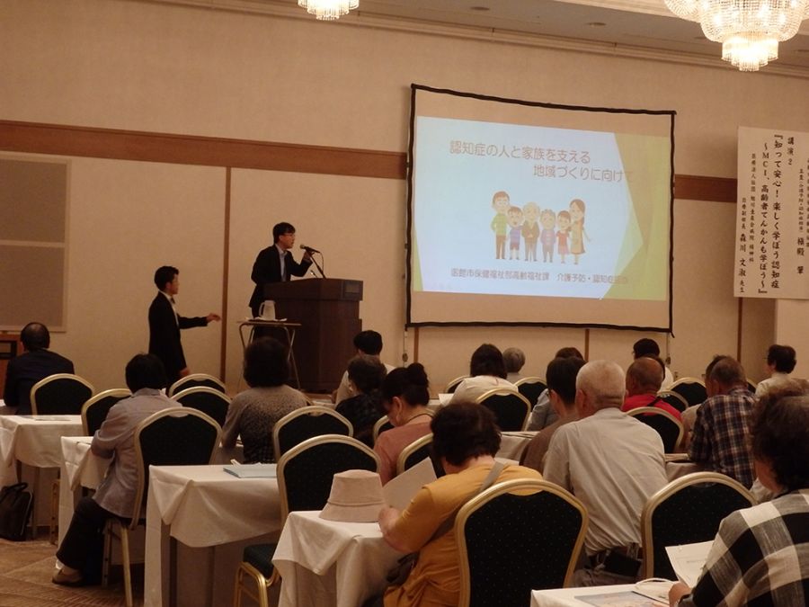 道南認知症疾患医療連携協議会主催の認知症市民講座を開催しました。1部は函館市の認知症の取り組みを市役所の方に講演していただきました。2部は旭川圭泉会病院の森川文淑先生をお招きし、認知症の基本的な基礎知識に加え、てんかんやせん妄など専門的な部分を一般の方にも分かりやすく教えてもらうことができました。